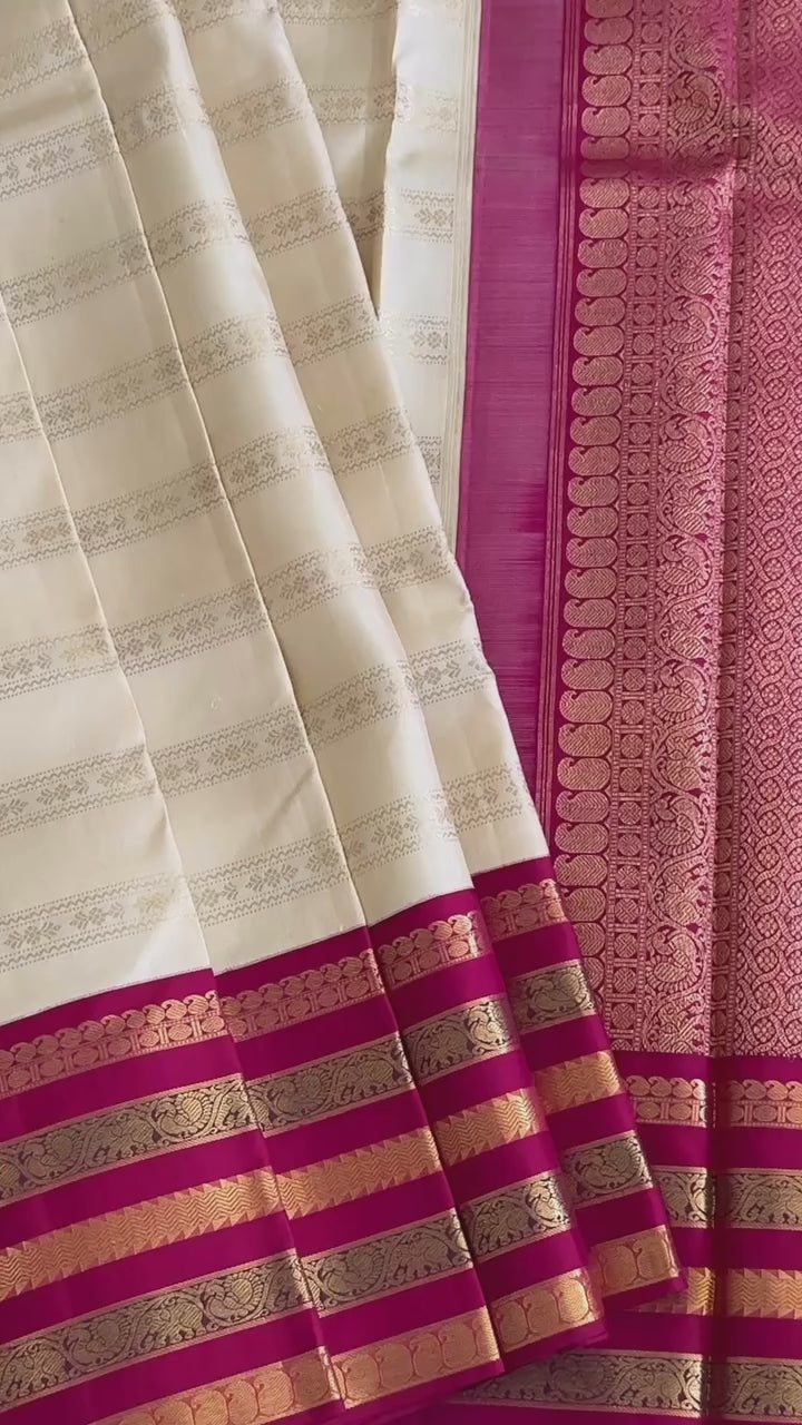 Korvai Kanjeevaram Pure silk handloom saree - beige red