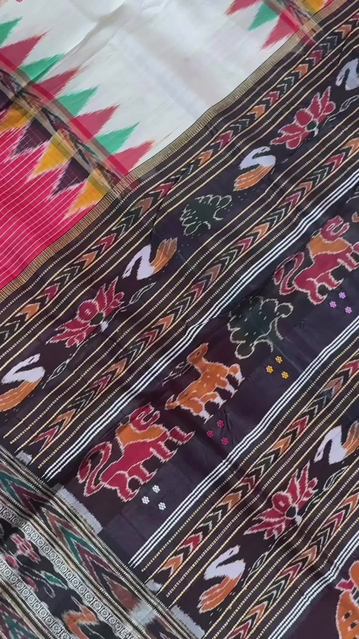Indulge in the ultimate luxury of this Khandua Odisha ikkat handloom saree. The intricate off-white and red design is expertly handcrafted, creating a one-of-a-kind piece. With every wear, you'll feel like a sophisticated muse of art and fashion. Elevate your wardrobe with this exclusive saree.