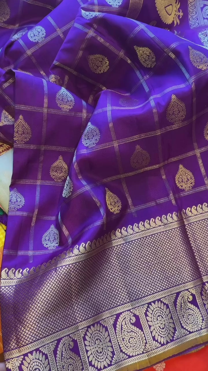 Indulge in luxury with our Kuttu Gadwal Pure silk handloom saree. This exclusive saree features a stunning combination of purple and mustard, handwoven with pure silk for a touch of elegance. Perfect for any occasion, this saree is a must-have for every fashion-forward individual.